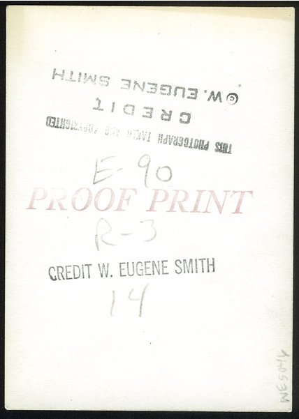 Two of Smith's credit stamps on verso, plus "Proof Print" stamp and pencil letters and numbers. A rich composition; his daughter, probably on her birthday.