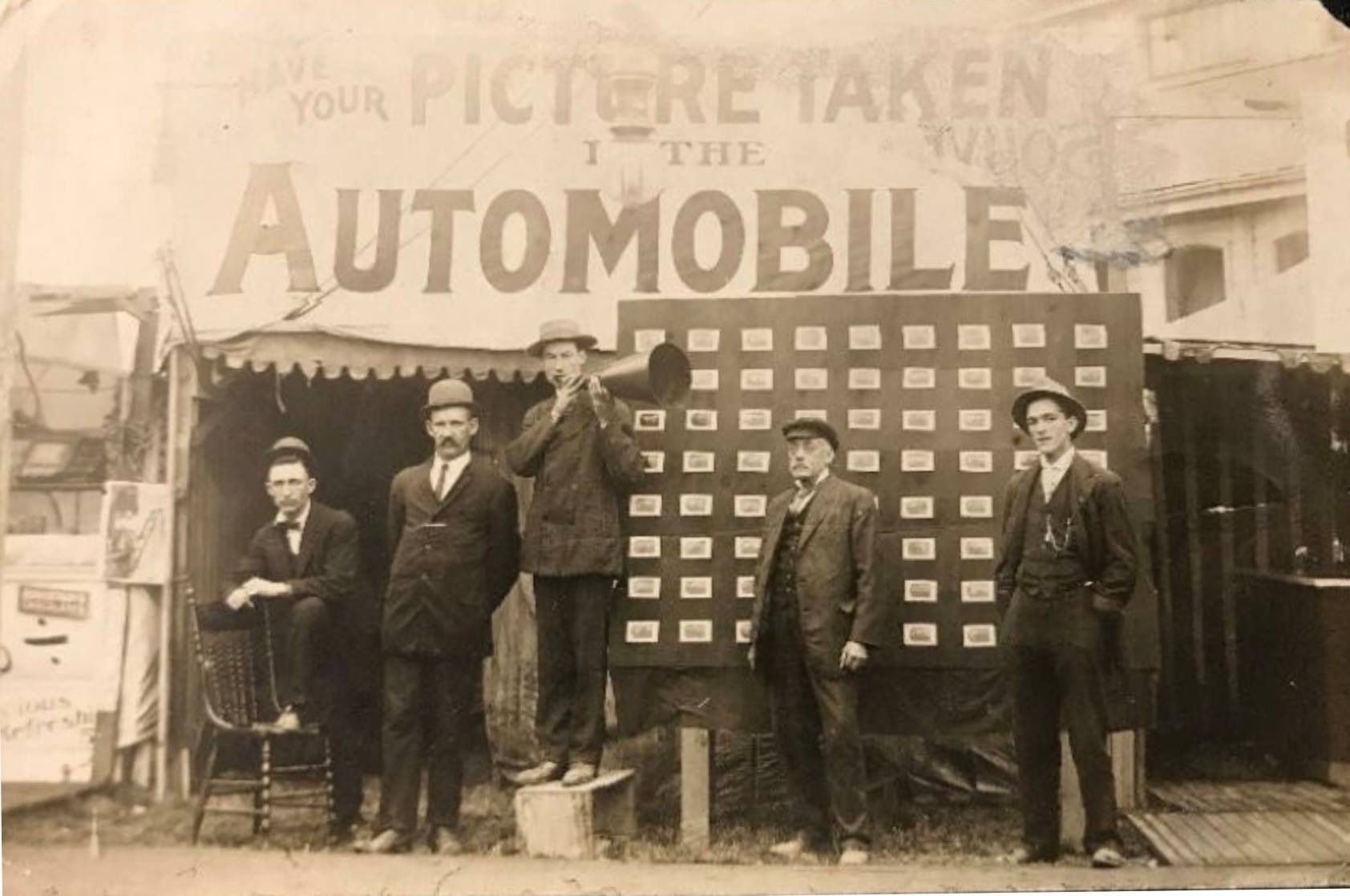 Photo booth with "Have your Picture Taken in the Automobile"