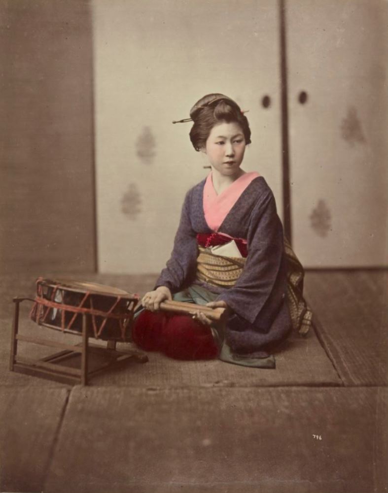 [Young girl with drum] [Jeune fille avec un tambour]