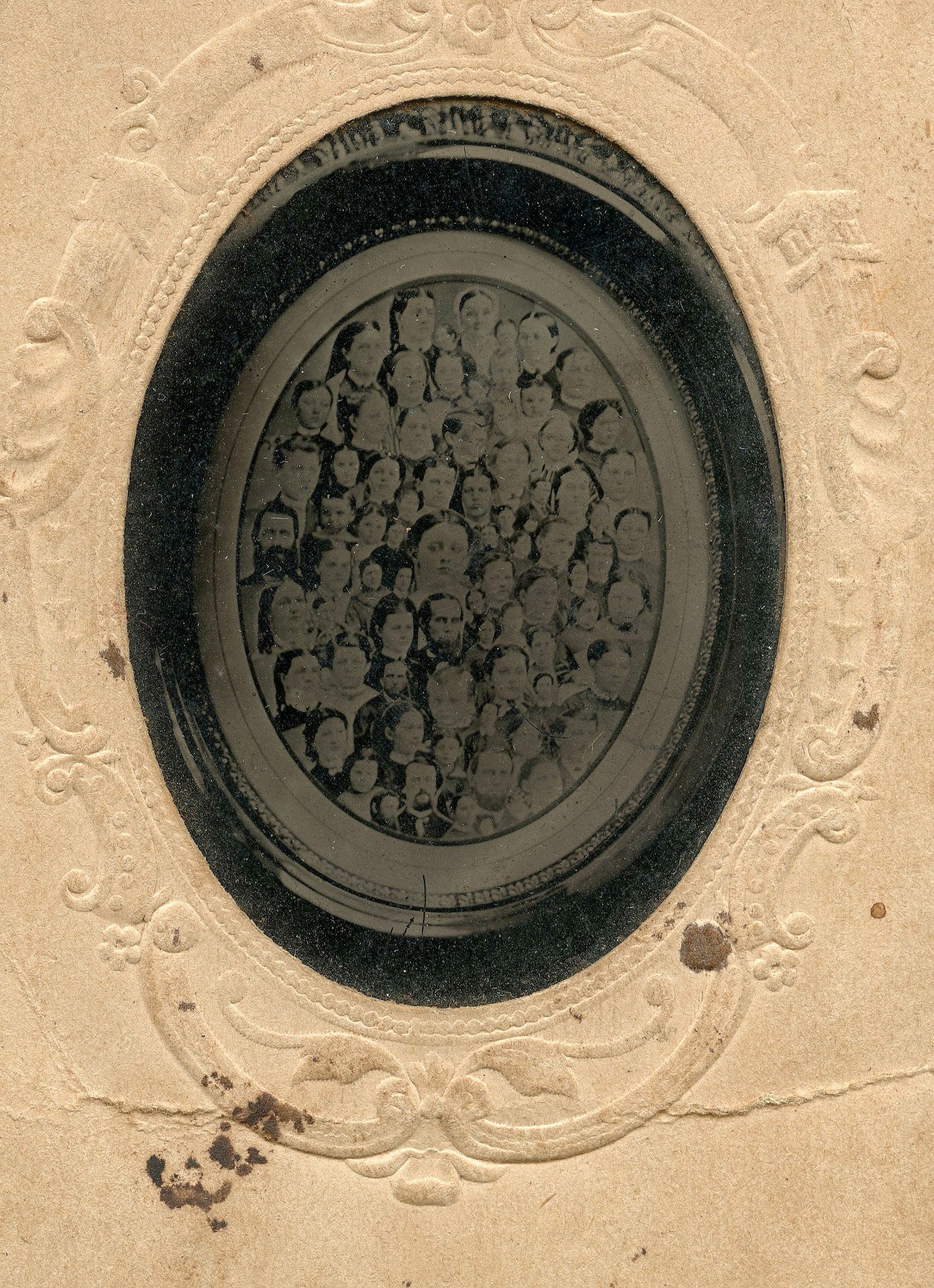 A tintype copy of a photomontage or photocollage with multiple portraits