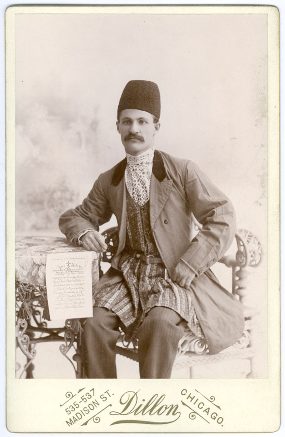 Dillon (535-537 Madison St., Chicago) n.d. A seated Persian man, Shumun K. Guergez, with a document