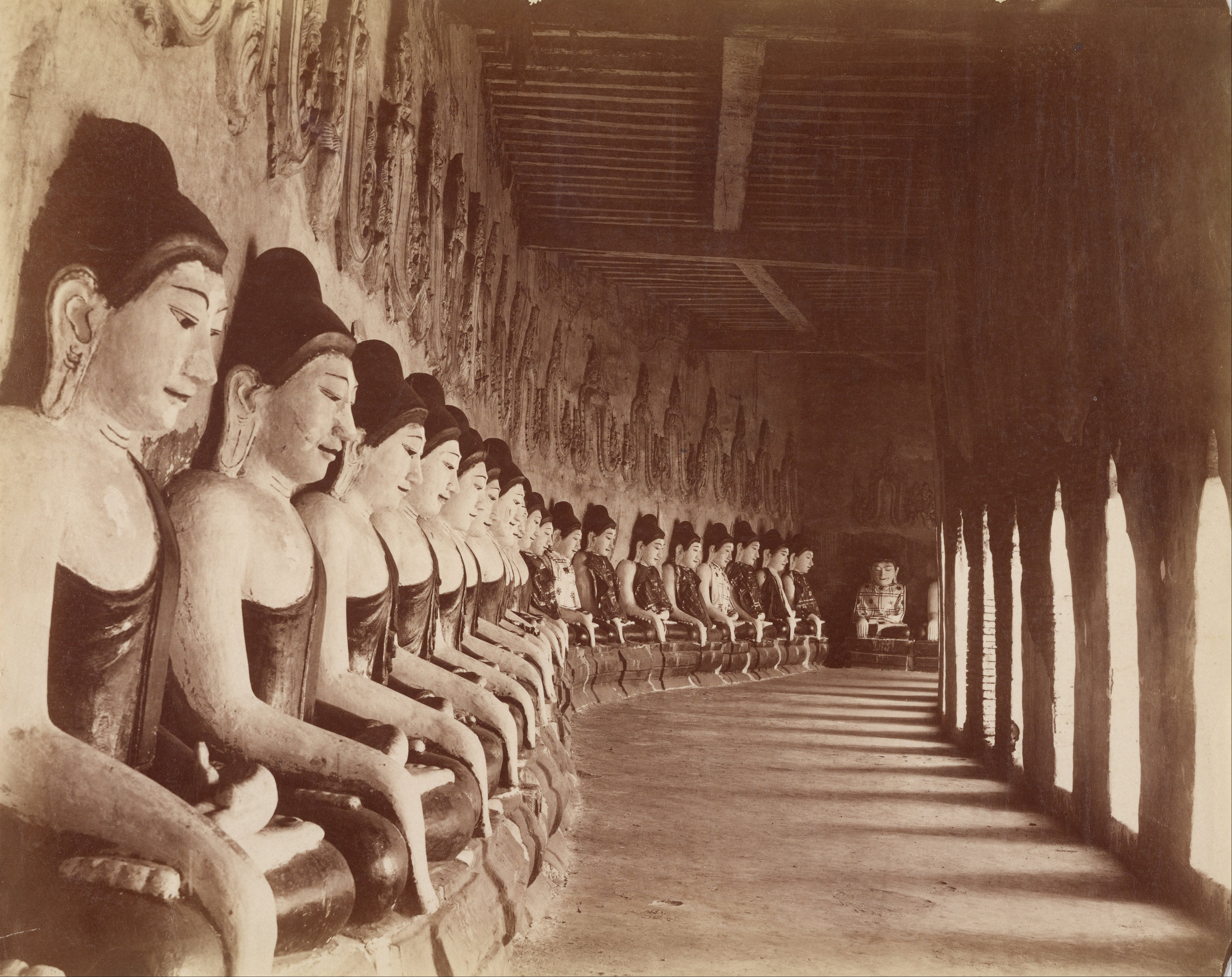Sagaing, the capital of Burma (present-day Myanmar) in the 1300s and 1500s, remained the country's center of Buddhist faith. Hundreds of pagodas, monasteries, and other retreats, including caves, are nestled in the surrounding hills and forests. In this temple there were fortynine representation of Gautama, the founder and primary figure of Buddhism.