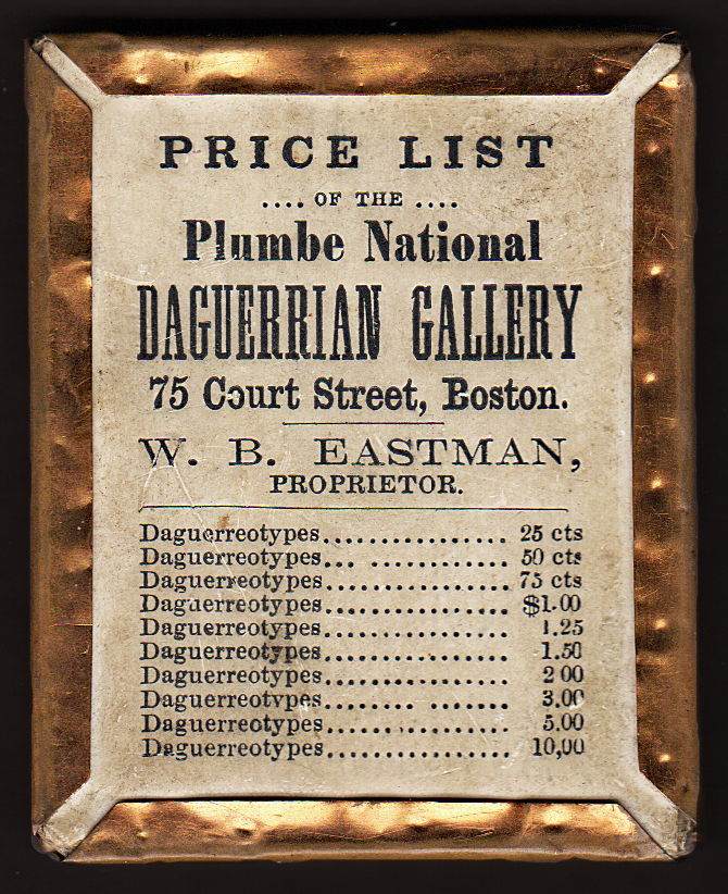 Price list of the Plumbe National Daguerrian Gallery, 75 Court Street, Boston. W. B. Eastman, Proprietor.
