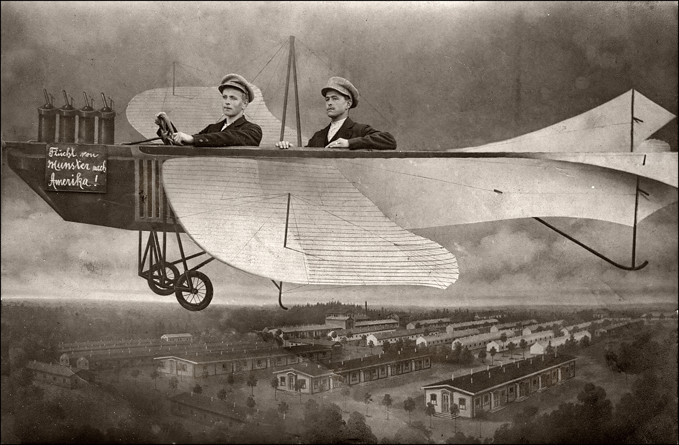 Studio portrait with an airplane foreground - "Escape from Munster to America"