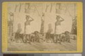 1860-1861, Man standing among tree stumps on bank of the Moyie River at the boundary cut, with cairn (stone pyramid) marking the boundary line between United States and Canada in the background., [Northwest Boundary Survey / British North American Boundary Commission],