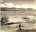 Paramount Famous Lasky Corporation, 1929 (copyright), Byrd Antarctic Expedition. Expedition member James Feury watching Commander Byrd plant a flag in the ice during the survey operation at Little America, Gelatin silver print, press photo, Larry Gottheim, Be-hold, Inc, LL/27731