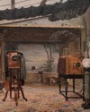 Josef Theodor Hansen (artist), 1893, Interior of Sophus Juncker-Jensen's photographic studio at Frederiksberggade 21 in Copenhagen, Denmark, Oil on cavas, painting, Den Hirschsprungske Samling, LL/131453
