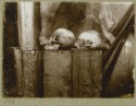 Arner Ludvig Valdemar Manniche (1867-1957, ornithologist, Director of the East Greenland Company), 1906-1908, [Two skulls], [The Danmark Expedition to Northeast Greenland 1906–1908], Photograph, Det Kongelige Bibliotek (The Royal Library), LL/131680