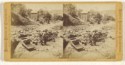 Unidentified photographer (American), 1865 (ca), [Woman sleeping on floor in a barn, resting up against a wall, basket of apples, a broom and a kettle next to her], Stereocard, J. Paul Getty Museum, LL/91734