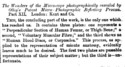 1857, 21 November, Advert for "Just published, Part I, price 3s, The wonders of the microscope photographically revealed, by means of Olley's patent micro-photographic reflecting process. W. Kent and Co., Publishers, Paternoster-row.", Advert,
