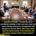 2019, 16-17 October, Lawrence O'Donnell: "I've been in a lot of presidential meetings in that room and I never saw anyone literally stand up to a president like that because no one ever had to.", Facebook post,