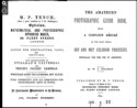 William J. Stillman, 1874, Advertising page and title page for Book cover for W.J. Stillman, 1874, The Amateur Photographic Guide Book, (London: M.P. Tench), Title page, Internet Archive, LL/131605