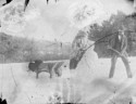 Thereza Llewelyn and/or possibly Mary Dillwyn, n.d., The Snowman No. 2 [A lady (possibly Lucy Llewelyn) and a man, with a barrow, building a snowman.], Collodion glass negative, National Museum of Wales - Amgueddfa Cymru, LL/131672