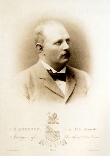 Naturalistic photographer. Often worked with the less well known Thomas Frederick Goodall (1856-1944). Influential in his lectures and writings on Naturalistic Photography, the belief that photography could express artistic and impressionistic truth as easily as any other art form, Emerson made his idyllic and beautiful studies of rural Norfolk life available in album form, exquisitely printed as platinum prints or photogravures, with explanatory text. He later recanted his views but was a strong and influential voice in the 1880s, along with Henry Peach Robinson and George Davison.