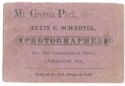, n.d., Backmark for "Mt. Gretna Park. - Elvin E. Schartel, Photographer. No. 841 Cumberland Street, Lebanon, PA. - Views of the Park always on hand.", Tintype, back,