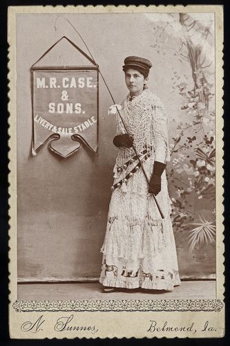 N. Sunnes (Belmond, La.), n.d., Banner lady for M.R. Case & Sons. Livery & Sale Stable, Cabinet card, Private collection of Laddy Kite,