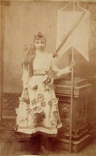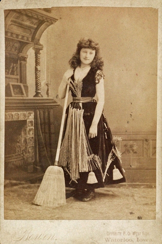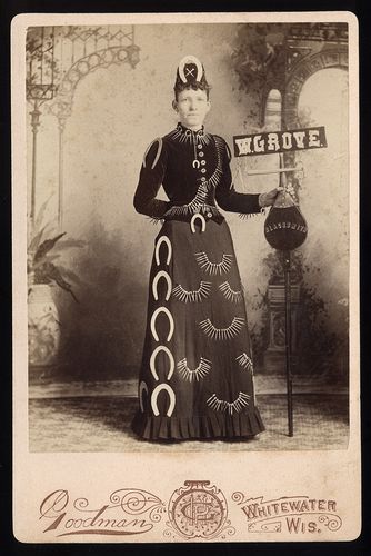 Goodman (Whitewater, Wis.), n.d., Banner lady for W. Grove Blacksmith, Cabinet card, Private collection of Laddy Kite,
