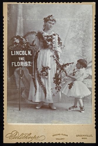 Dalethorpe (Greenville, Mich.), n.d., Banner lady for Lincoln, The Florist, Cabinet card, Private collection of Laddy Kite,