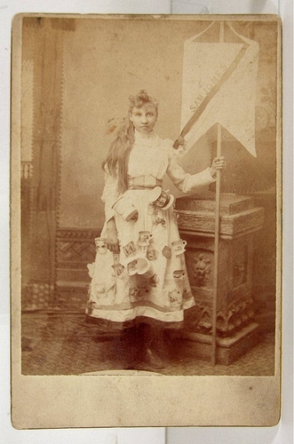 Unidentified photographer, 1892 (ca), Banner lady for Dexheimer's Studio in Marion, Indiana, Digital positive, from glass negative, Indiana Historical Society, P379 H. P. Dexheimer / Lawrence H. Beitler Collectio,