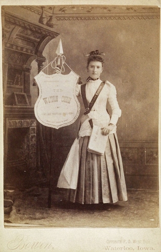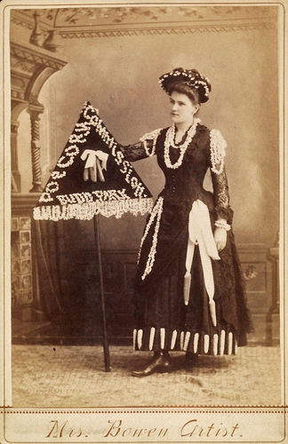 Mrs. G.M. Bowen (Waterloo, Iowa), 1890 (ca), Banner lady for The Waterloo Courier, Cabinet card, New York Historical Society, Subject File, PR068,