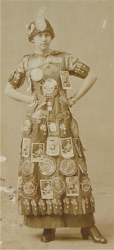 Mrs. G.M. Bowen (Waterloo, Iowa), 1890 (ca), Banner lady for Popcorn Commission Budd Park, Cabinet card, New York Historical Society, Subject File, PR068,