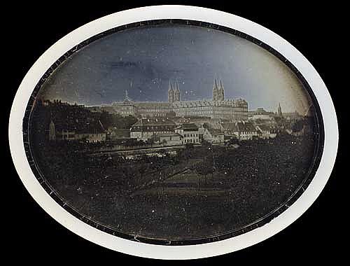 Unidentified photographer, 1848, 23 June (?), Castle [Ansicht von Bamberg], Daguerreotype, 9.6 x 7.2 / 15.2 x 12.6 cm, Private collection of W. & T. Bosshard, Courtesy of Carl Mautz Vintage Photography & Publishing,