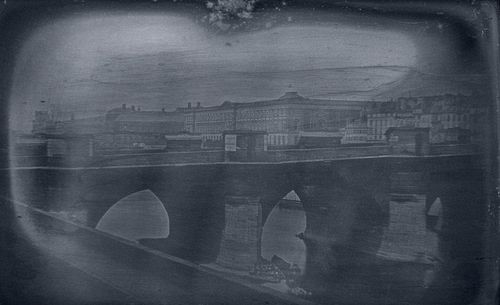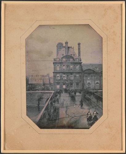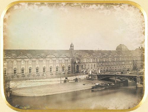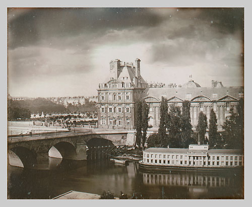 Louis Jacques Mandé Daguerre, 1839, The Pavillon de Flore and the Pont-Royal [Le Pavillion de Flore et le Pont Royal], Daguerreotype, 16.2 x 21.3 cm (6 3/8 x 8 3/8 ins), Musée des arts et métiers, Inv.: 08745-0001-,