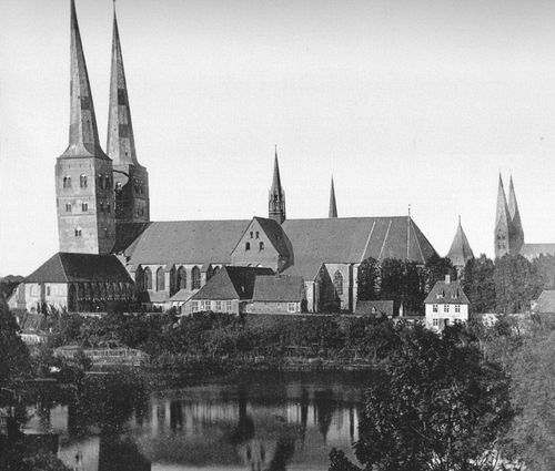 Joseph Wilhelm Pero, 1847, Der Lübecker Dom mit den Resten des vom 13. bis zum 15. Jahrhundert errichteten Domklosters (1889 grösstenteils abgetragen zugunsten eines Museumsneubaus), Uncertain type, Creative Commons - Wikipedia,