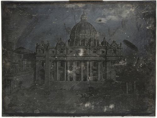 Unidentified photographer, 1845 (or after), The facade of St. Peter's Basilica in Rome with on the foreground of the square Bernini, Daguerreotype, FotoMuseum Provincie Antwerpen - FOMU, www.daguerreobase.org - Daguerreobase no: FMA-P-1966-114,