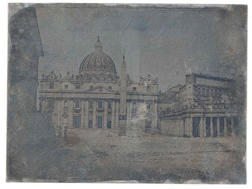 Pierre-Ambroise Richebourg, 1840 (ca), Rome: Place et Basilique Saint Pierre, Daguerreotype, 12 x 16 cm, Interencheres - La Gallerie de Chartes, Exceptionnel ensemble de 9 daguerréotypes Romes, vers 1840 (Galerie de Chartres, Auction, 23 October 2011, Lot: 8),