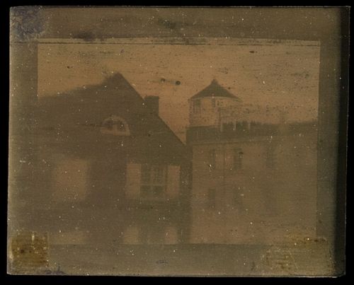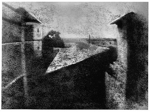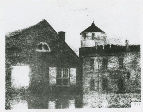Reproduction of Joseph Nicéphore Niépce's "View from the Window at Le Gras", Gelatin silver print, with watercolor, 20.3 x 25.4 cm, Harry Ransom Humanities Research Center at the University of Texas at Austin, HRC (964:0000:0001),