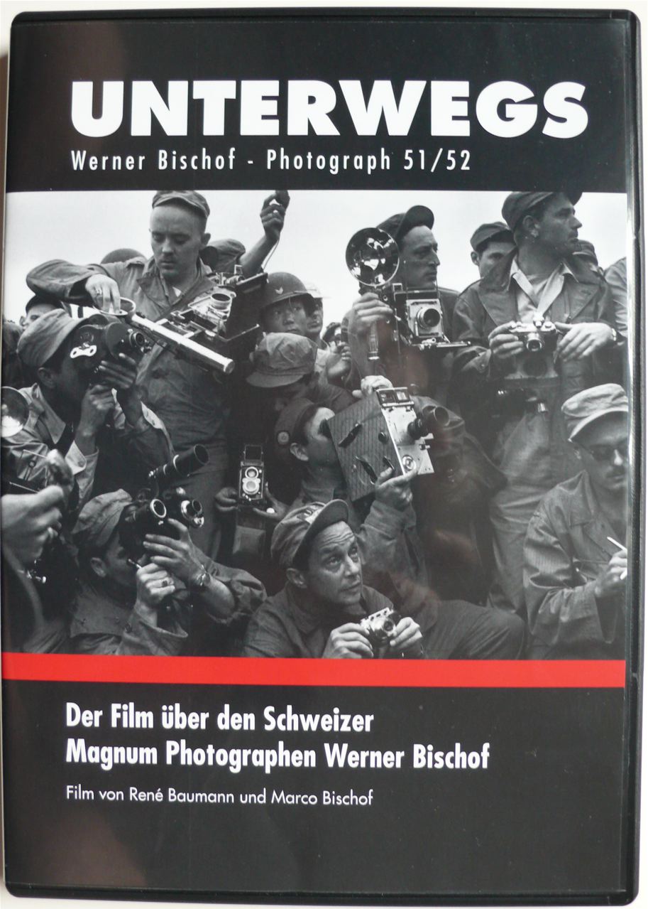 DVD cover for "Unterwegs: Werner Bischof - Photograph 51/52", a film by René Baumann and Marco Bischof. Zurich: Marco Bischof, 1987. 50 minutes. black & white