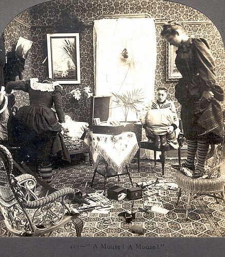 Unidentified photographer / artist, n.d., Keys #423 "A Mouse! A Mouse!", Stereocard, detail,
