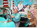 Les Krims, 2003, May, German Businessman Plays at the Wheel of a Prop, Turquoise, Chevy Bel Air Convertible, while Lap Dancer Waits, Gambling Resort, Inkjet print, Provided by the artist - Les Krims, LL/14697